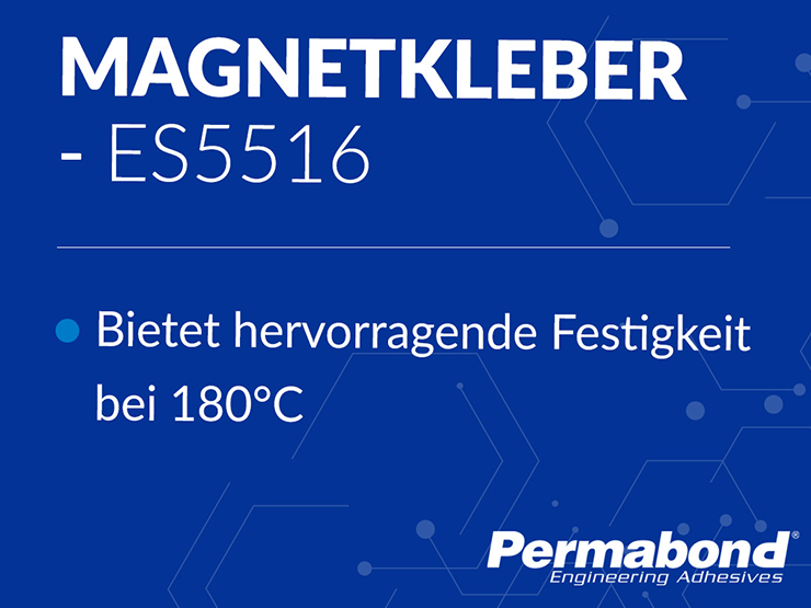 Permabond hat auf die Nachfrage der Industrie reagiert und einen neuen Hochtemperatur-Magnetklebstoff entwickelt. Der wärmehärtende Epoxidharzklebstoff Permabond® ES5516 bietet eine hervorragende Wärmefestigkeit und hält auch bei 180 °C hochfeste strukturelle Verbindungen aufrecht. Somit ist er ideal zum Verkleben von Magneten in Elektromotoren und auch solcher in Permanentmagnet-Synchronmotoren.